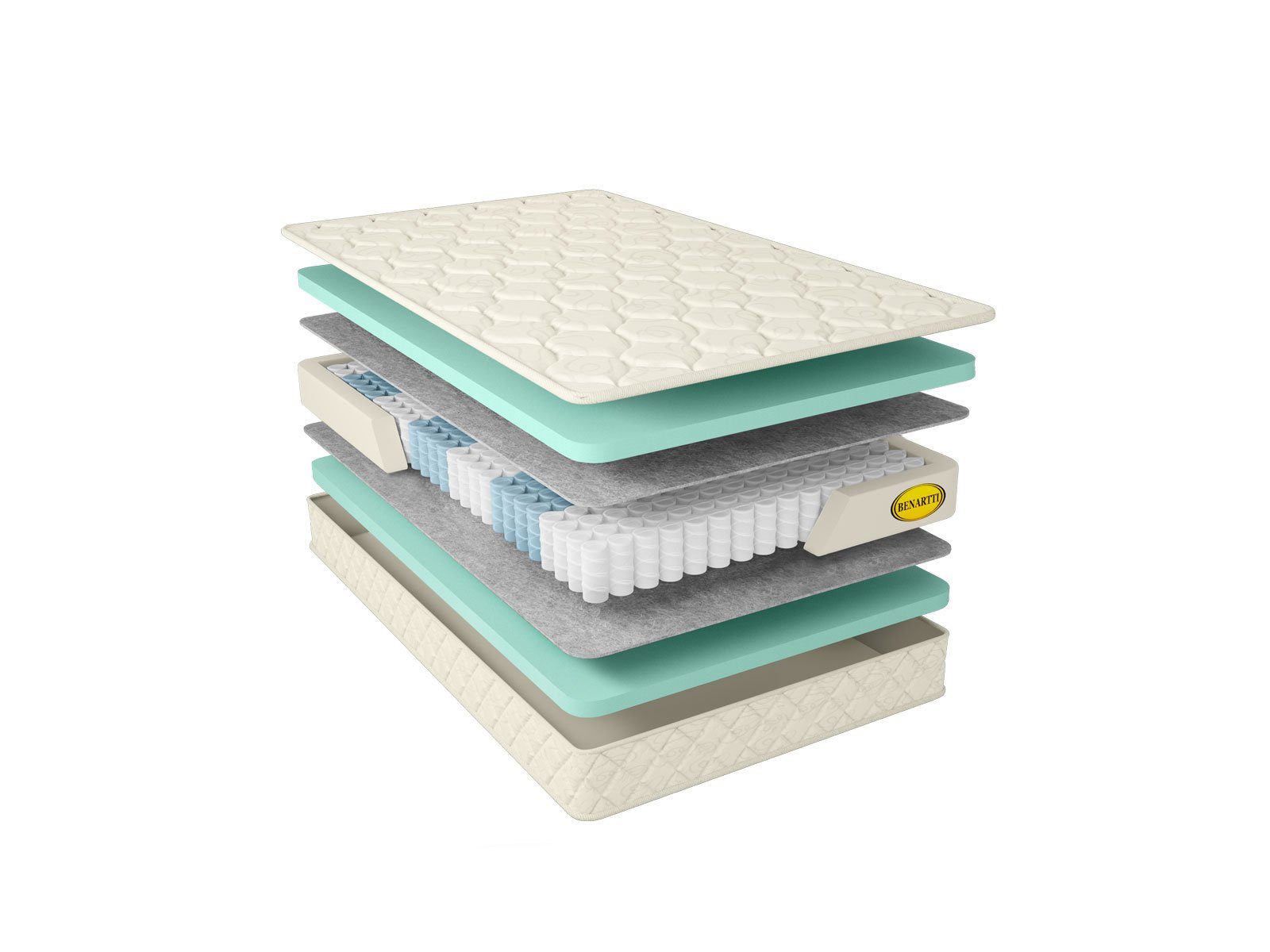 Матрас поставляется в красивом стёганном чехле с антибактериальной пропиткой SANITIZED. Обивка состоит из слоя жаккарда и слоя холлкона. Жакард включает в свой состав натуральные хлопковые нити, что позволяет материалу «дышать», а холлкон является современным экологически чистым аналогом синтепона с улучшенными свойствами.