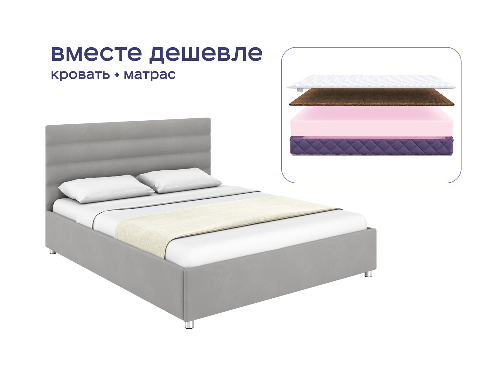 Комплект Левита + Базилик Фреш 25 Кокос — это воплощение уюта и стиля для вашей спальни. Кровать с изящным изголовьем и матрас, который подарит ощущение отдыха на курорте. При покупке комплекта вы сэкономите до 36%, сочетая эстетичный дизайн со здоровым сном. Идеальное решение для тех, кто хочет превратить спальню в место роскошного отдыха без переплат.