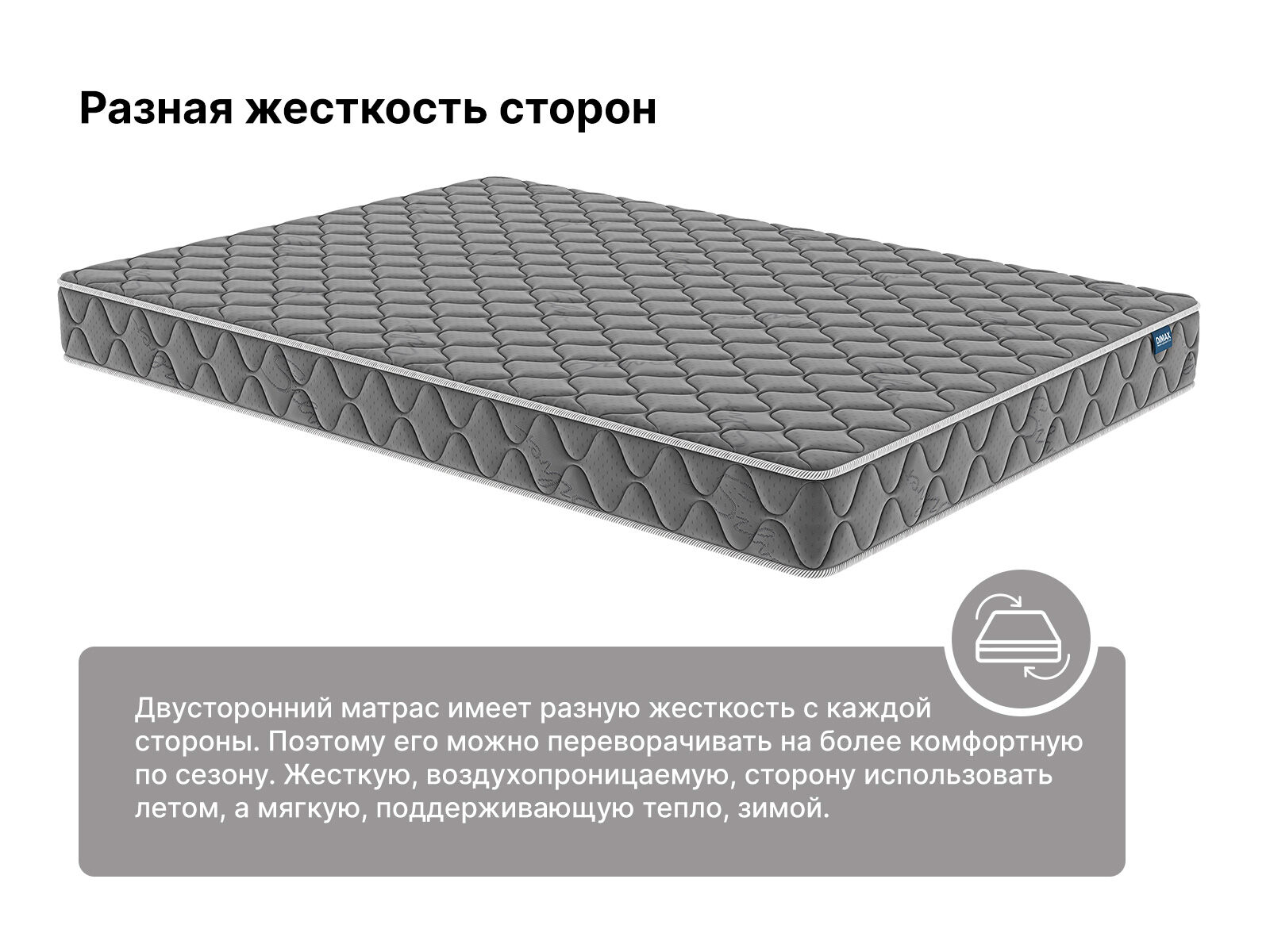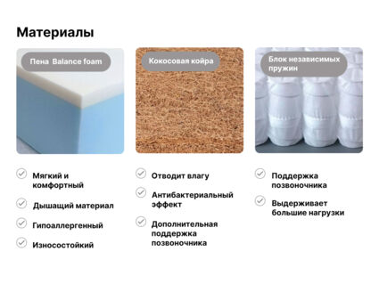 Сторона со средней жёсткостью проложена пеной Balance foam. Наполнитель подстраивается под фигуру и обеспечивает комфортный и здоровый сон.