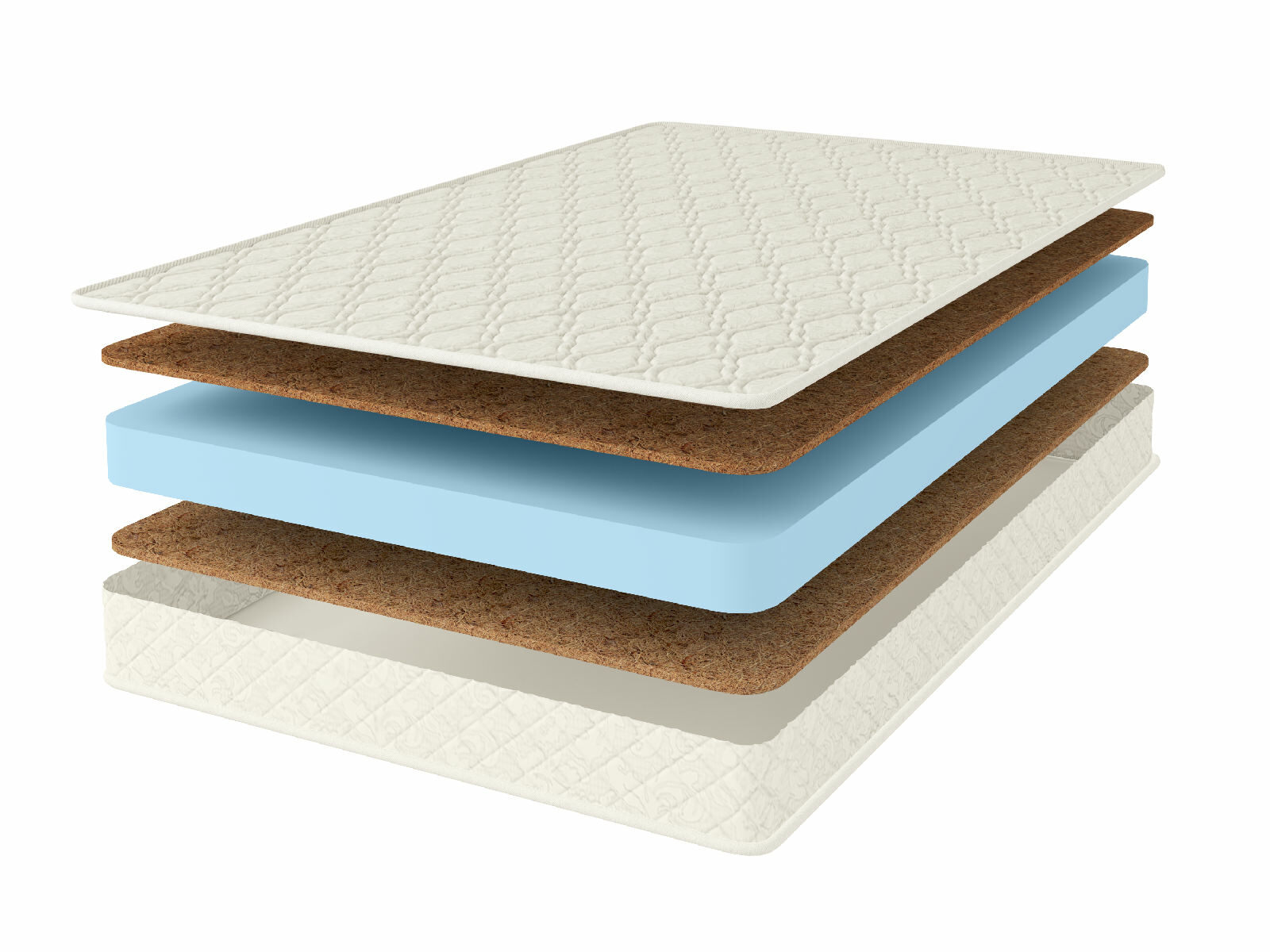 Модель состоит из искусственного латекса и кокосовой койры, которая проложена сразу с двух сторон. Жёсткость кокоса позволяет отлично распределять вес по всему изделию. Именно поэтому модель рассчитана на большую нагрузку и выдерживает до 90 кг на спальное место.