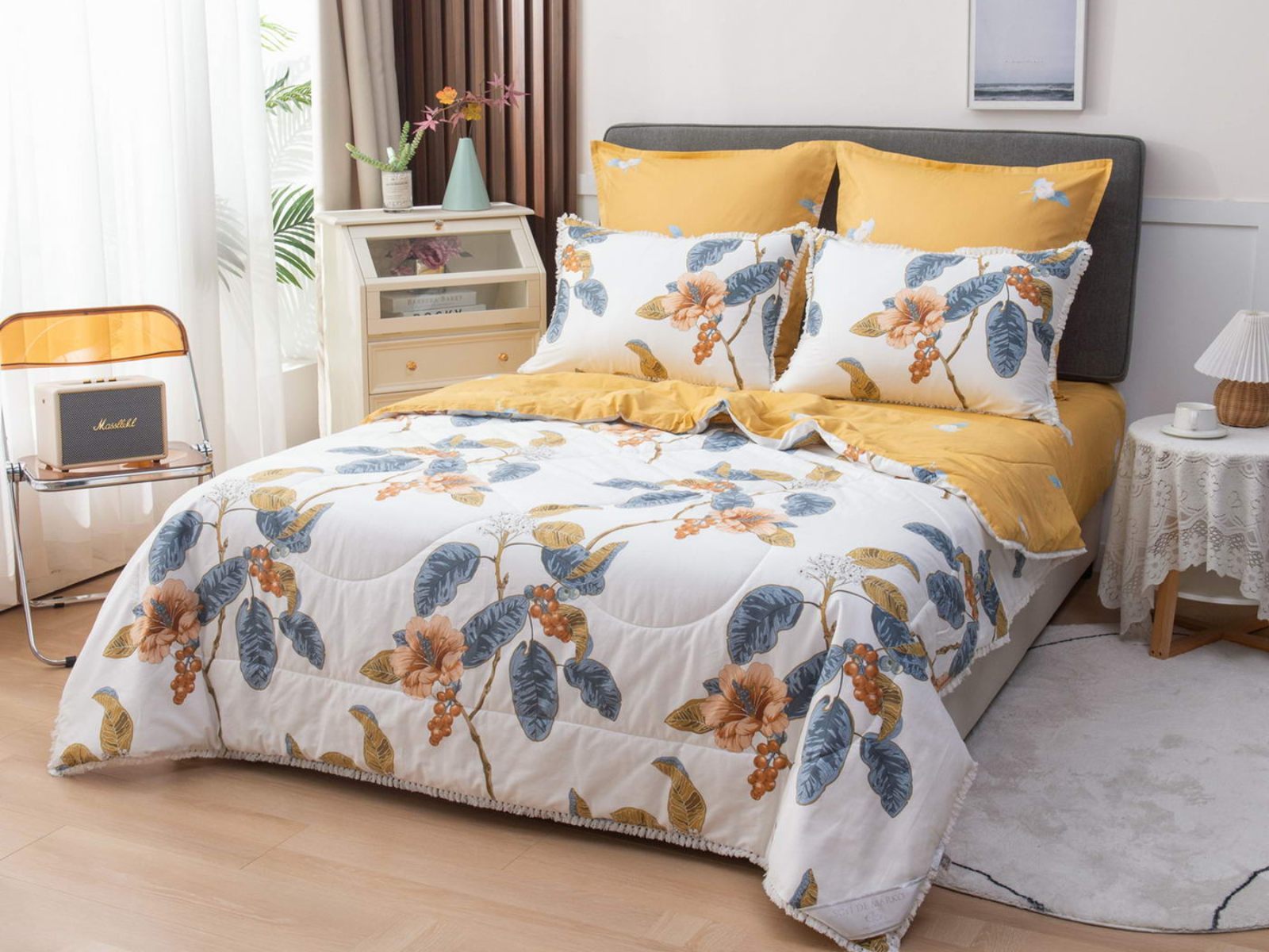 В комплекты комфортеров с одеялом Бернадетт входят наволочки, простыня и легкое всесезонное одеяло. Оцените это современное и очень удобное решение, которое идеально подходит тем, кто не любит возиться с пододеяльниками.