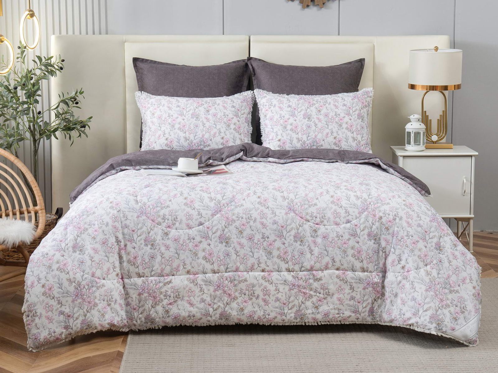 В комплекты комфортеров с одеялом Бернадетт входят наволочки, простыня и легкое всесезонное одеяло. Оцените это современное и очень удобное решение, которое идеально подходит тем, кто не любит возиться с пододеяльниками.