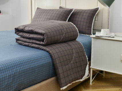 В комплекты комфортеров с одеялом Бернадетт входят наволочки, простыня и легкое всесезонное одеяло. Оцените это современное и очень удобное решение, которое идеально подходит тем, кто не любит возиться с пододеяльниками.