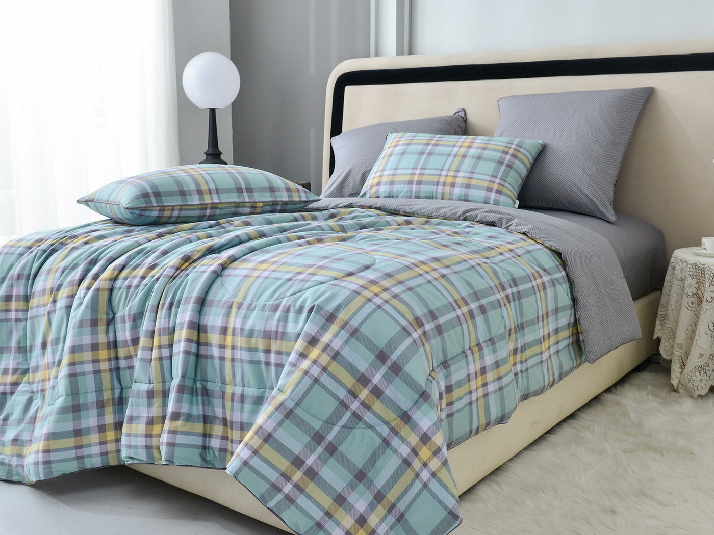 Особенность: двусторонняя модель, наволочки и одеяла декорированы кантом.