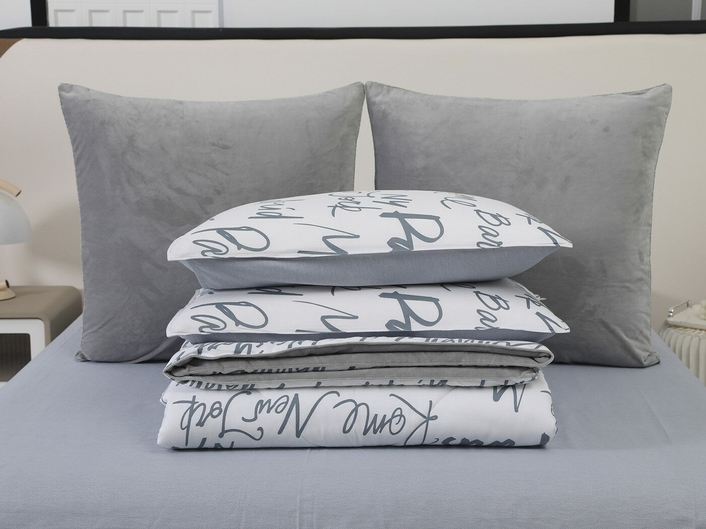 Новая коллекция комплектов «Роберто» с одеялом из однотонного велюра и принтованного сатина.