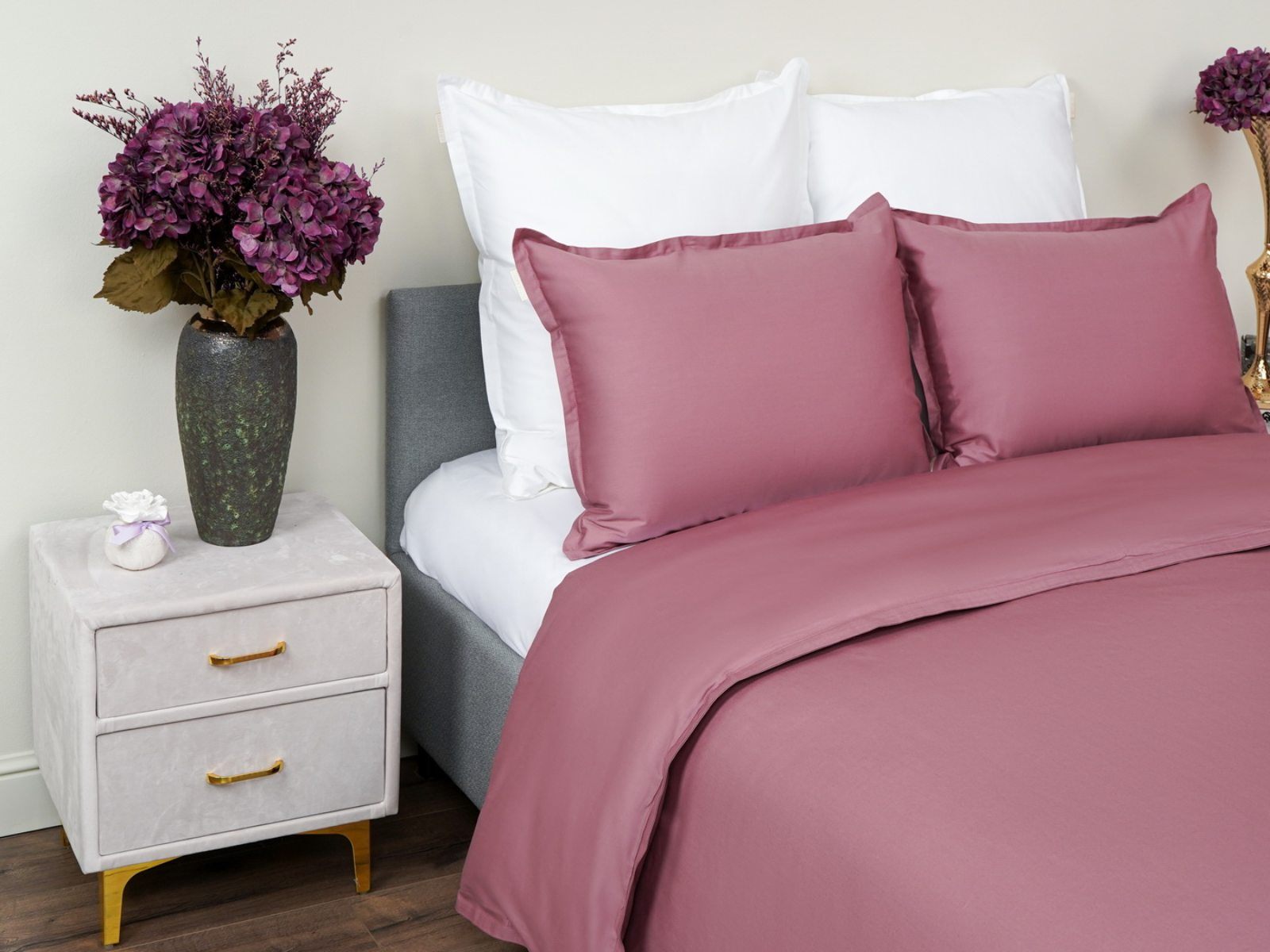 Особенность: наволочки и пододеяльник с ушками 2 см по периметру, пододеяльник на пуговицах;