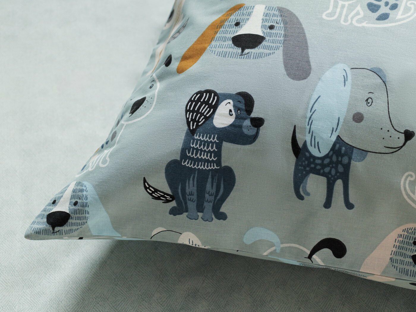 Наволочка – полностью из принтованной ткани, на запахе. Запах широкий, расположен сбоку по стороне 50 см.