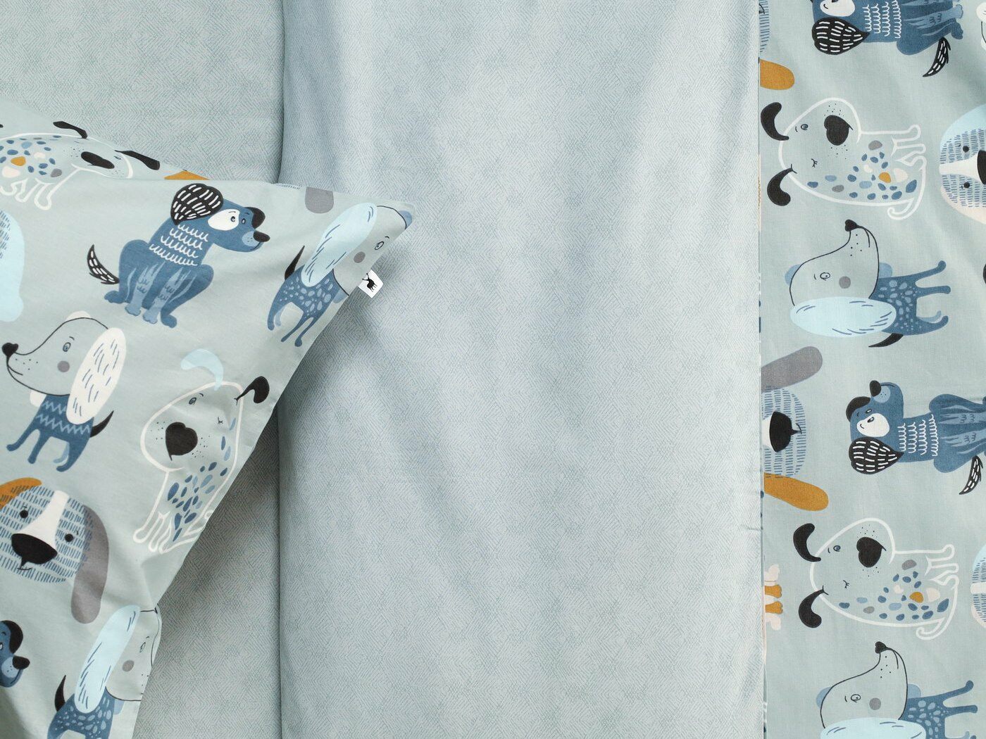 Пододеяльник –двусторонний: верх из ткани А (принтованная ткань), обратка из ткани В (однотонная рогожка), с потайной молнией.