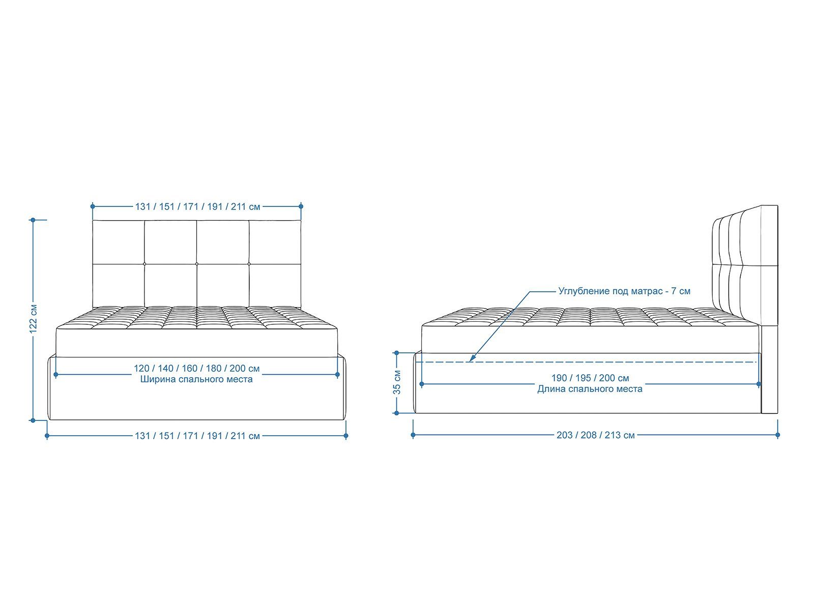 Мягкая кровать с обивкой из велюра.