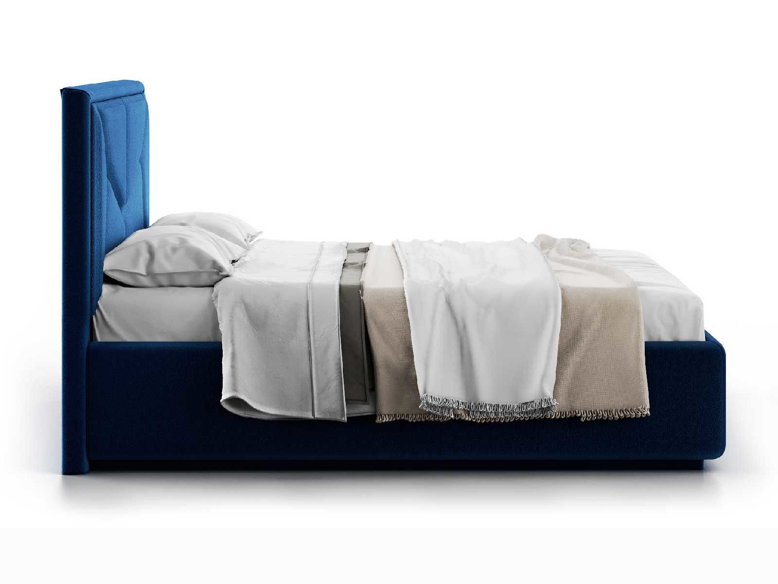Кровать укомплектована IQ с подъемным механизмом и ящиком для белья без дна (дополнительная платная опция - дно к ящику IQ из HDF (ХДФ). Каркас кровати на цоколе, декоративный чехол на цоколе съёмный. Глубина ящика для белья - 30 см, без ограничения нагрузки на ящик.