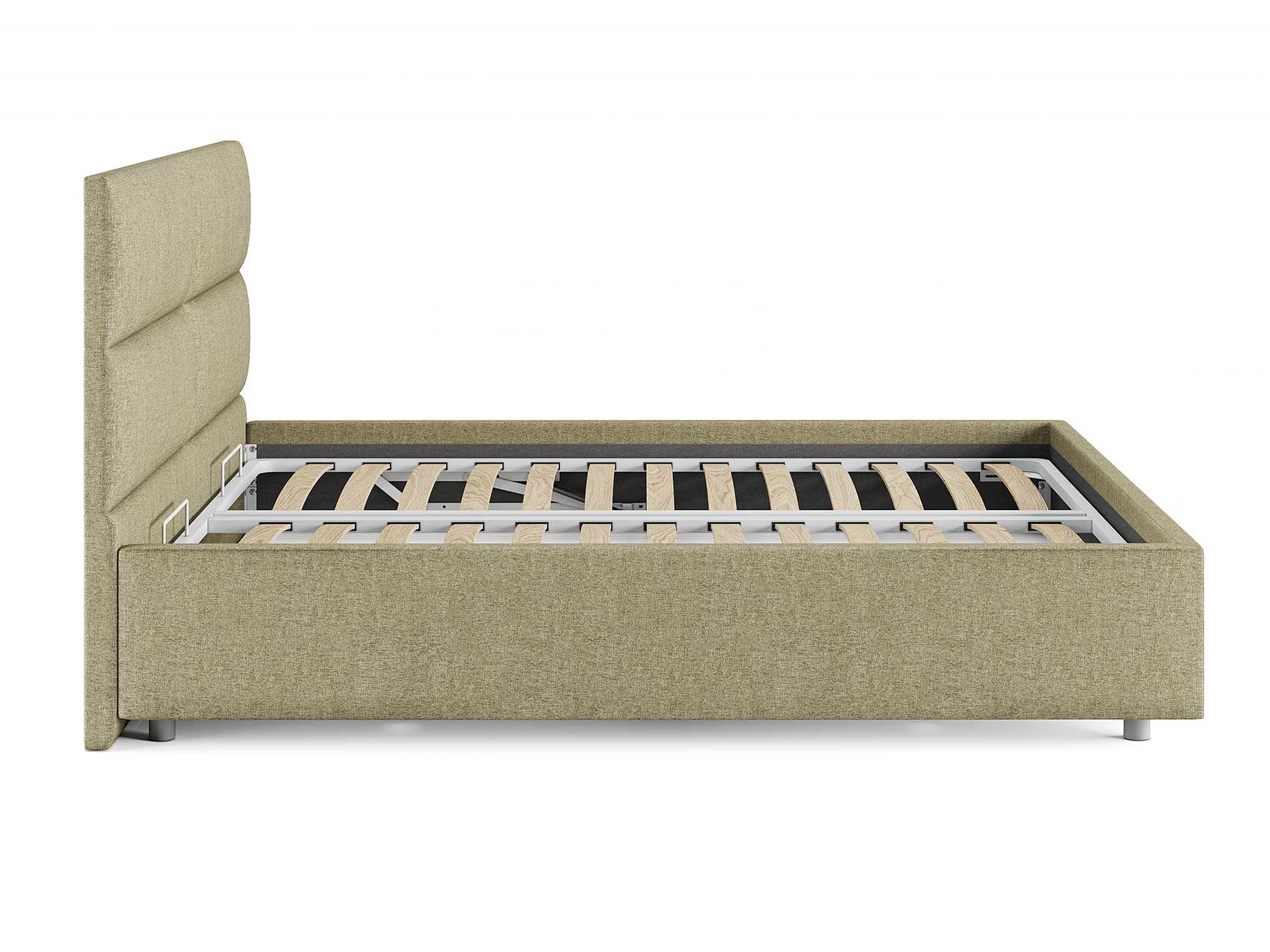 Кровать комплектуется металлическим основанием и подъемным механизмом со вместительным бельевым ящиком. Дно бельевого ящика легко сдвигается для обеспечения уборки под кроватью.
