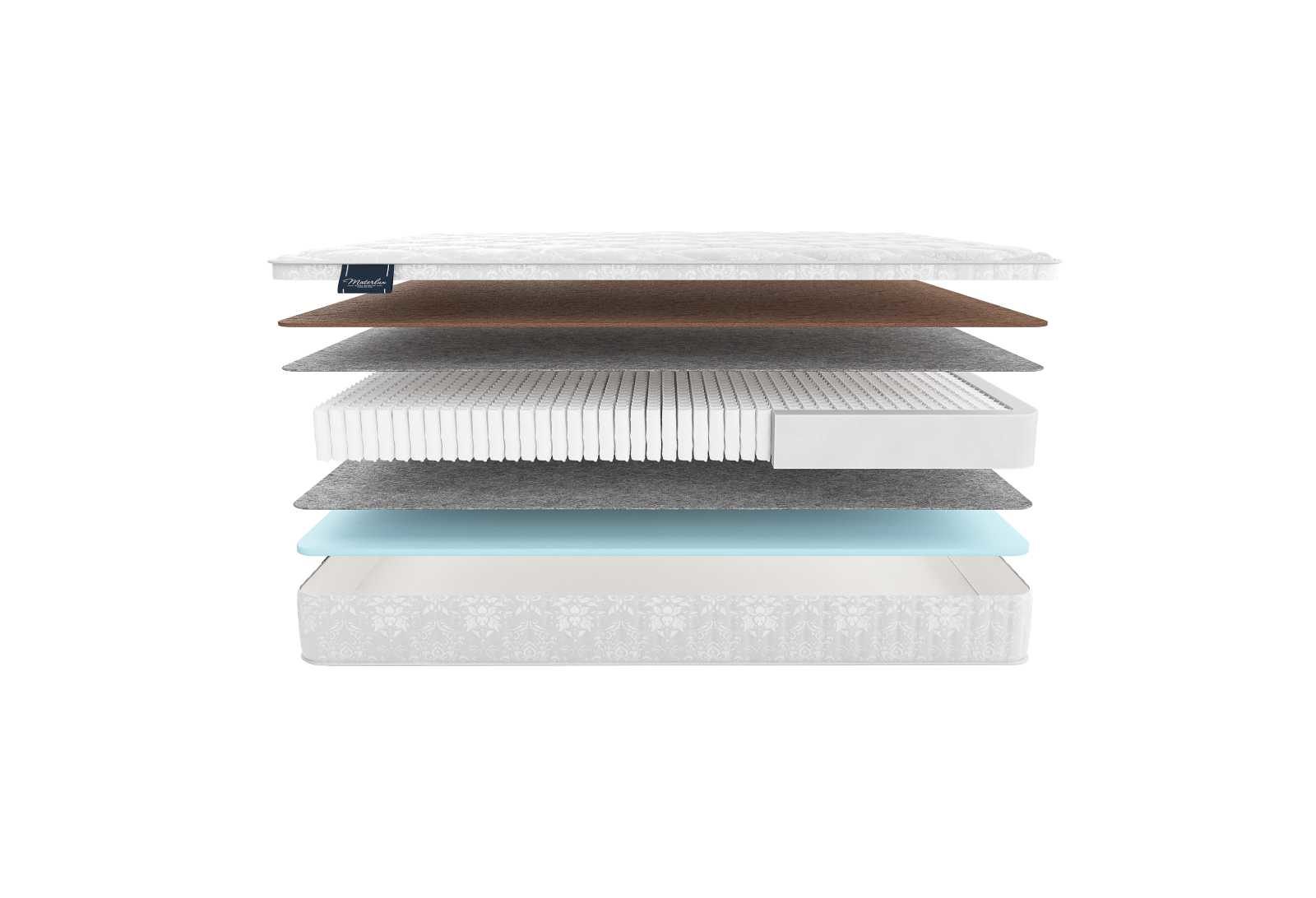 Основным поддерживающим элементом матраса выступает блок пружин, содержащий как минимум 530 спиралей на квадратный метр. Такое число считается увеличенным, поэтому блок относится к усиленным структурам. Благодаря его присутствию матрас выдерживает нагрузку до 120 кг на спальное место. Важно отметить, что все пружины в блоке – это автономные единицы, которые точечно подстраивают поверхность под тело человека.