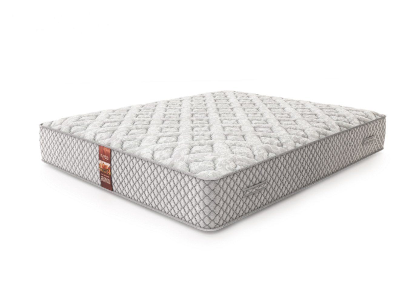 Несъемный изысканный чехол из мягкого трикотажа светло-серого цвета (немаркий и практичный цвет), простёганного на объёмном волокне холлкон 300 гр., ППУ 1 см и спанбонде — приятен тактильно, повышает уровень комфорта. Бурлет матраса выполнен из плотного мебельного жаккарда серого цвета, простеганного на ППУ 1 см — усиление периметра, сохранение геометрии матраса. Декоративные ручки