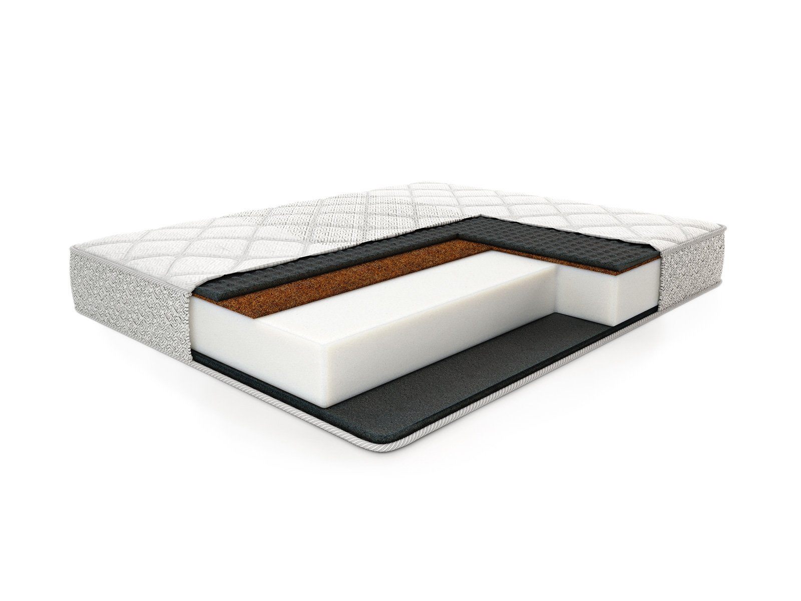 Одна из поверхностей получила кокосовый слой. Натуральный жёсткий наполнитель усиливает поддерживающие свойства, а также добавляет твёрдости стороне.