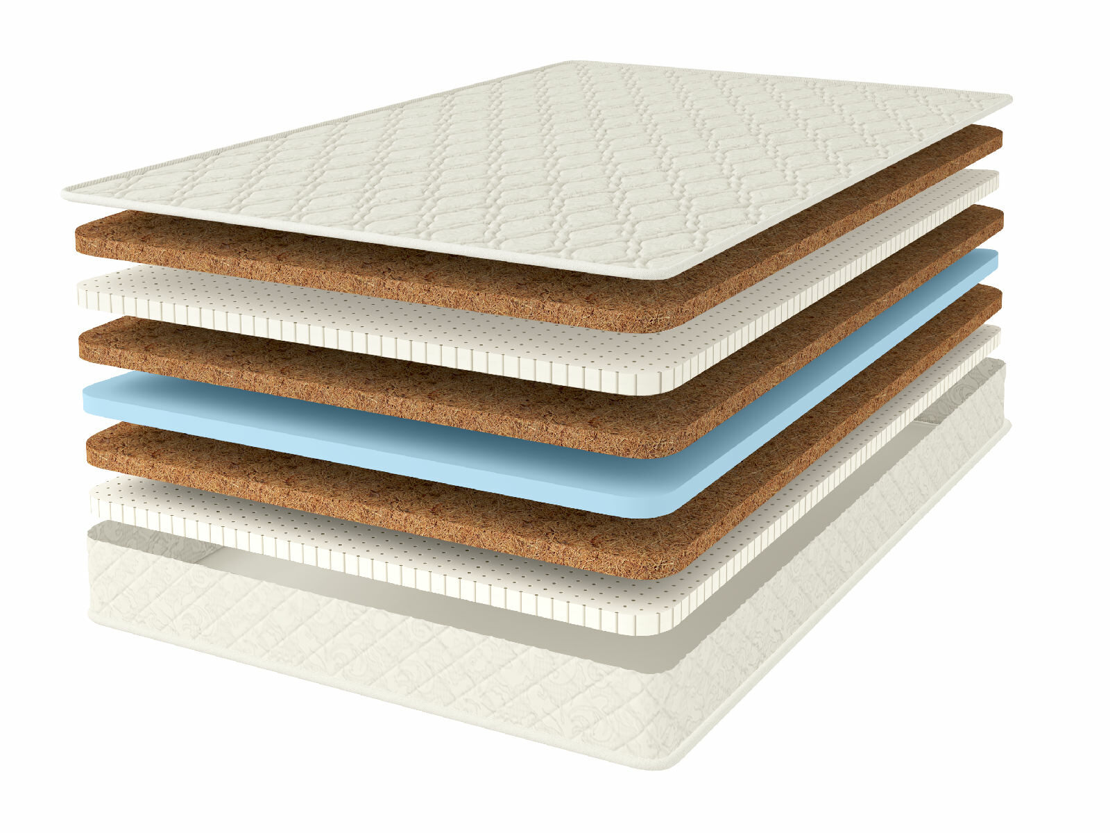 Кокосовое волокно с натуральным латексом придает жесткость, экологически чистый материал, который прекрасно вентилируется.