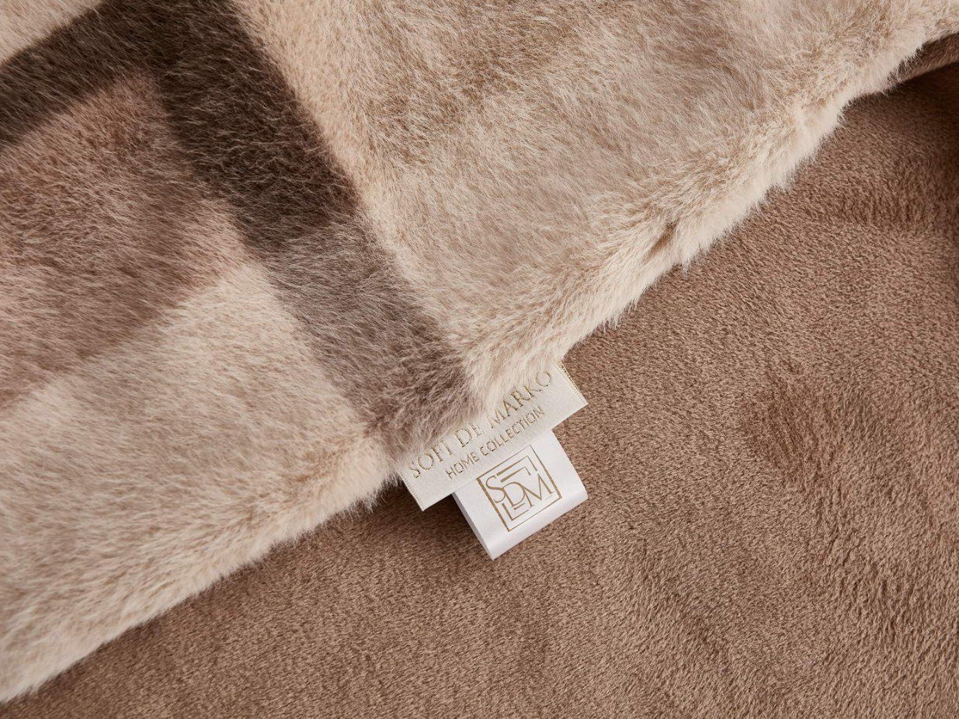 Плед выполнен из искусственного меха с лицевой стороны, оборотная сторона из мягкого материала будет приятна к телу. Изделие гипоаллергенно, подходит детям и людям с чувствительной кожей.