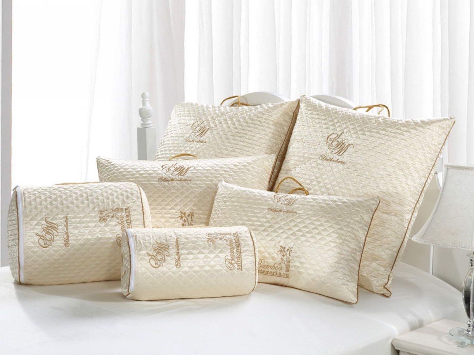 Бамбуковые подушки выделяются долговечностью, прочностью и высокой износостойкостью. Они не вызывают никаких раздражений на коже человека, идеально подходят людям, страдающим аллергией и астмой. Чехол подушек серии "Бамбук люкс" украшен жаккардовыми рисунками в форме бамбуковых веточек.