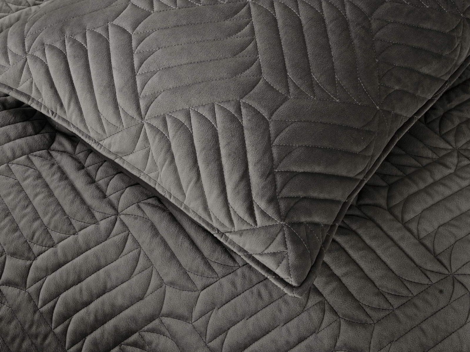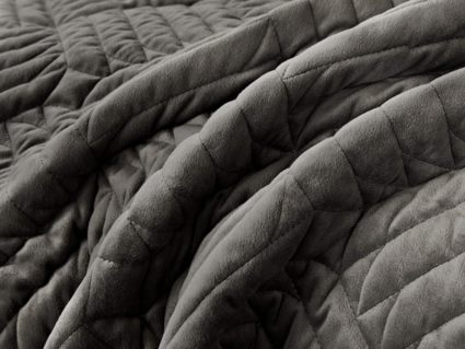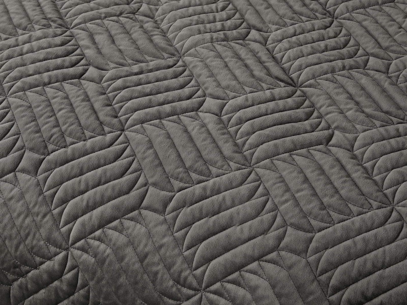 Покрывала выполнены в 10 оттенках: крем, мокко, пепельный, песочный, светло-бежевый, светло-серый, серый, темно-серый, чайная роза и черный. Стежка в виде геометрического орнамента подойдет к любому современному интерьеру. Из-за особого плетения, велюровая ткань покрывала отражает свет и красиво переливается при различном освещении.