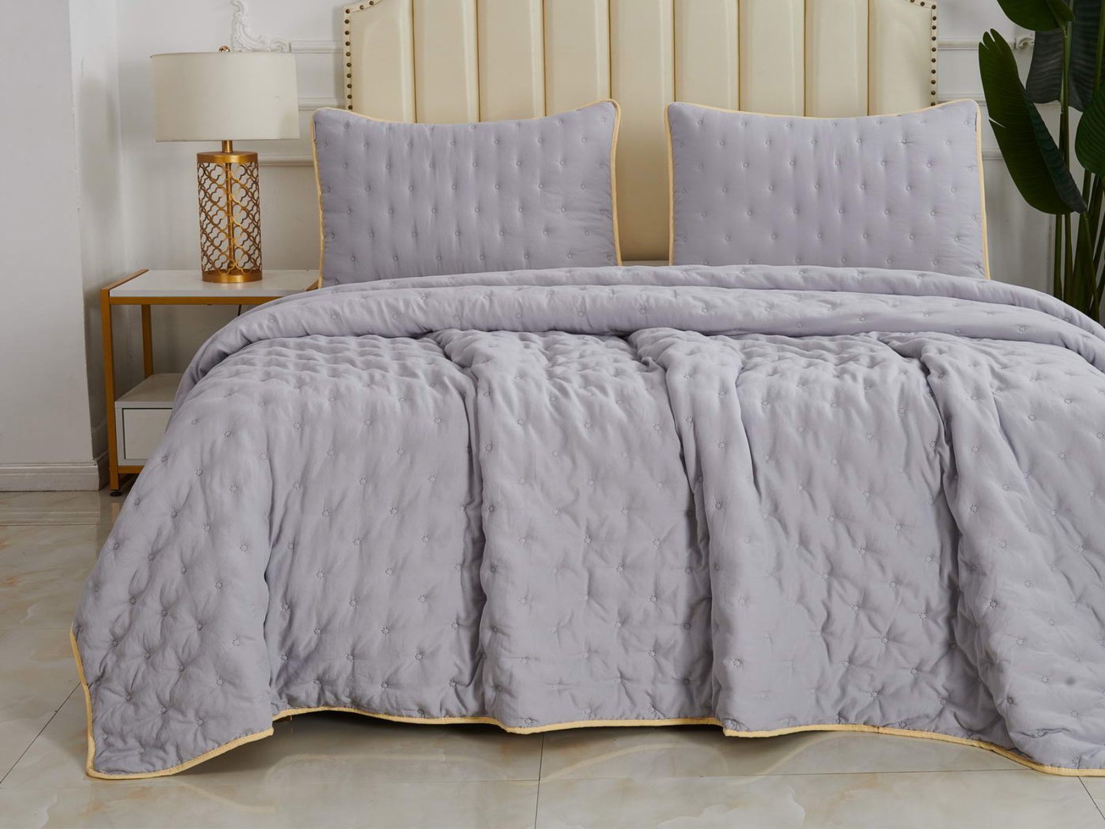 Двусторонние стеганные покрывала Броуди легкие и прочные. В комплект входят покрывало и одна либо две наволочки (50х70 см) из аналогичного материала в зависимости от размера. При желании покрывало можно использовать как легкое одеяло.
