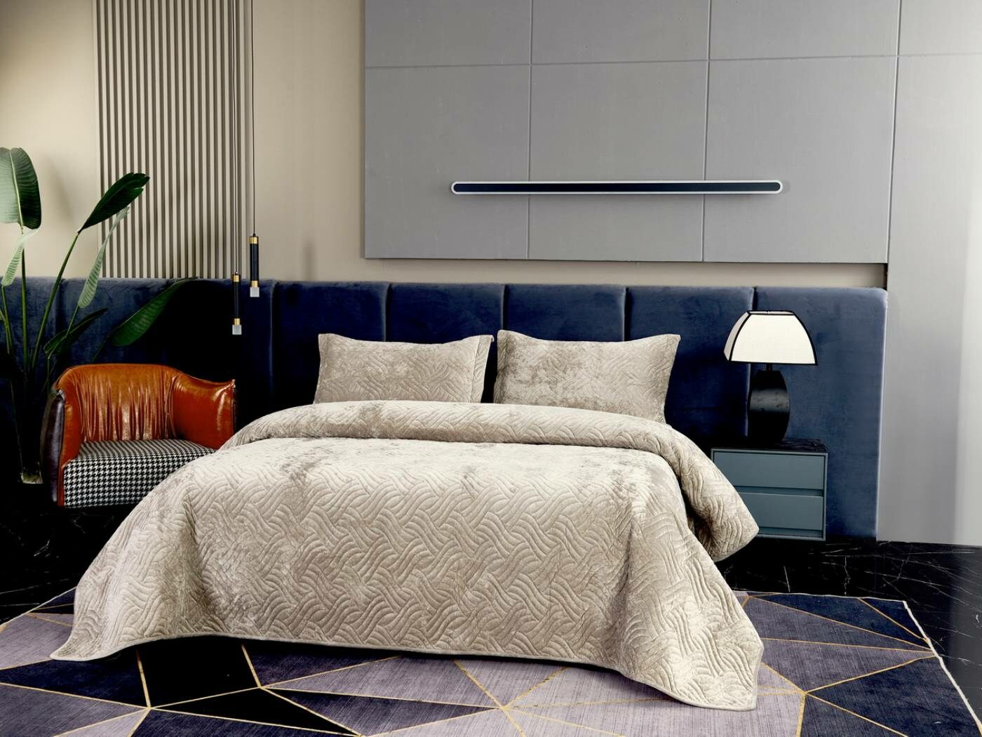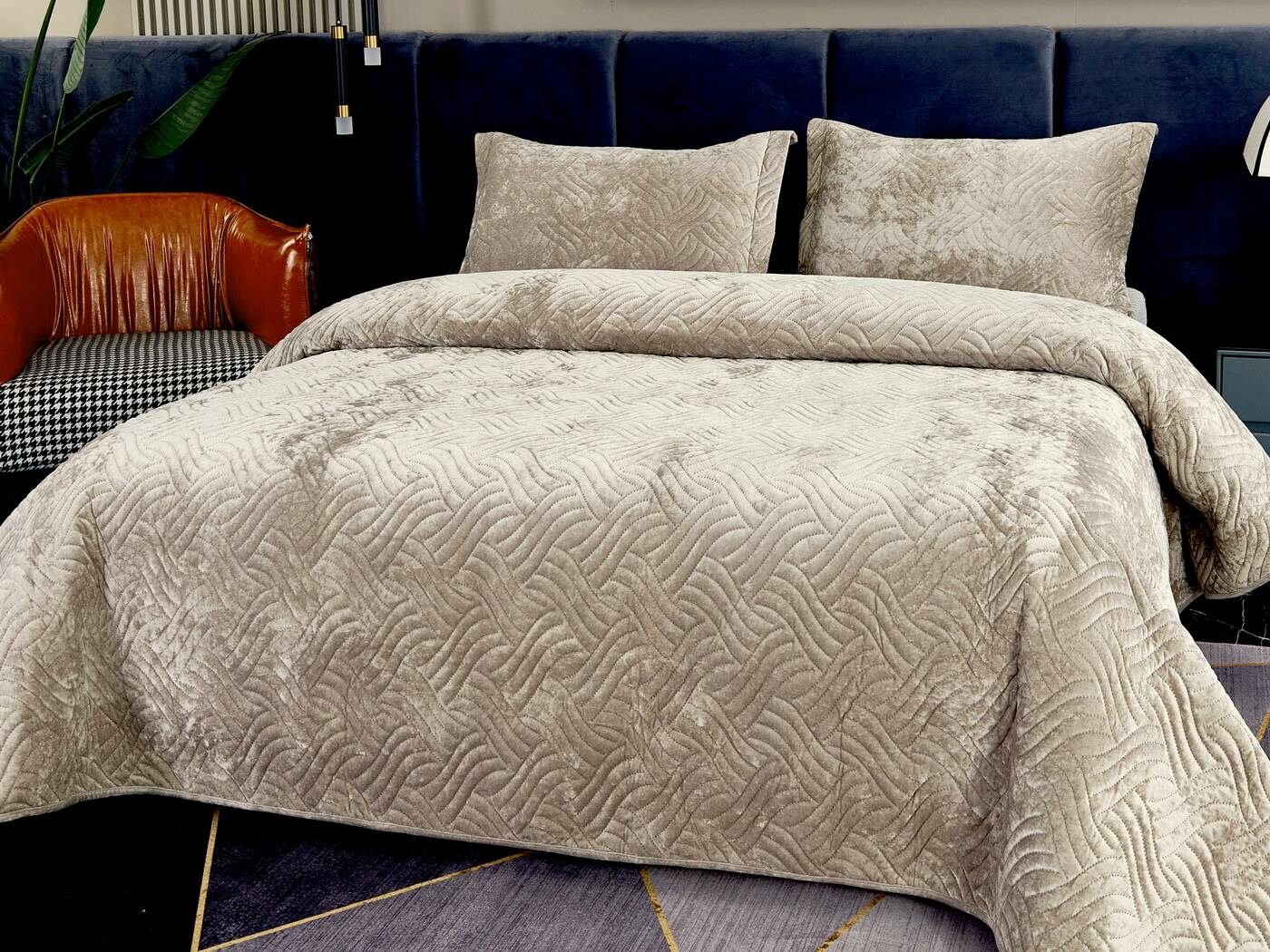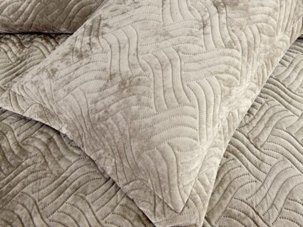 Покрывала «Деварта»: нежность и уют в вашем доме Окунитесь в мир комфорта и изысканности с новой коллекцией мягких бархатных покрывал «Деварта». Эти изделия станут настоящим украшением вашей спальни, добавив ей уюта и элегантности. Покрывала изготовлены из высококачественного бархата, который приятен на ощупь и обладает нежной бархатистой текстурой. Они устойчивы к износу и надолго сохраняют свой привлекательный внешний вид, яркость цвета и мягкость. Благодаря прочной и качественной декоративной стёжке «косичка» наполнитель надёжно зафиксирован внутри изделия. «Деварта» представлена в пяти оттенках: от тёплого бежевого до спокойного серо-голубого. Вы сможете подобрать идеальный вариант для вашего интерьера. Размерный ряд включает два варианта, что позволяет выбрать покрывало, которое идеально подойдёт для вашей кровати или дивана. В комплект входят две наволочки размером 50х70 см. Каждое покрывало аккуратно обшито кантом, а наволочки украшены милыми ушками шириной 5 см. Это придаёт изделиям особый шарм и делает их ещё более привлекательными. Не упустите возможность приобрести эти замечательные покрывала и создать в своём доме атмосферу тепла и уюта. «Деварта» подарит вам не только эстетическое наслаждение, но и незабываемые ощущения при каждом прикосновении.