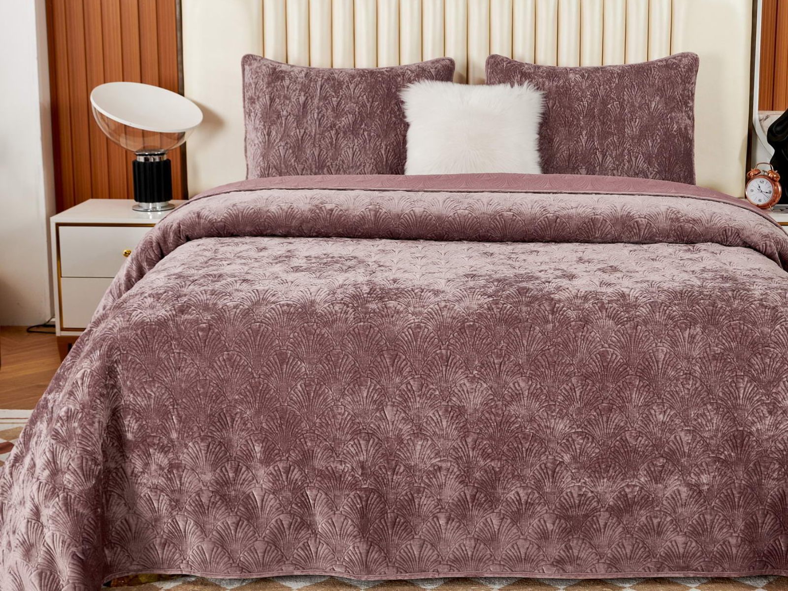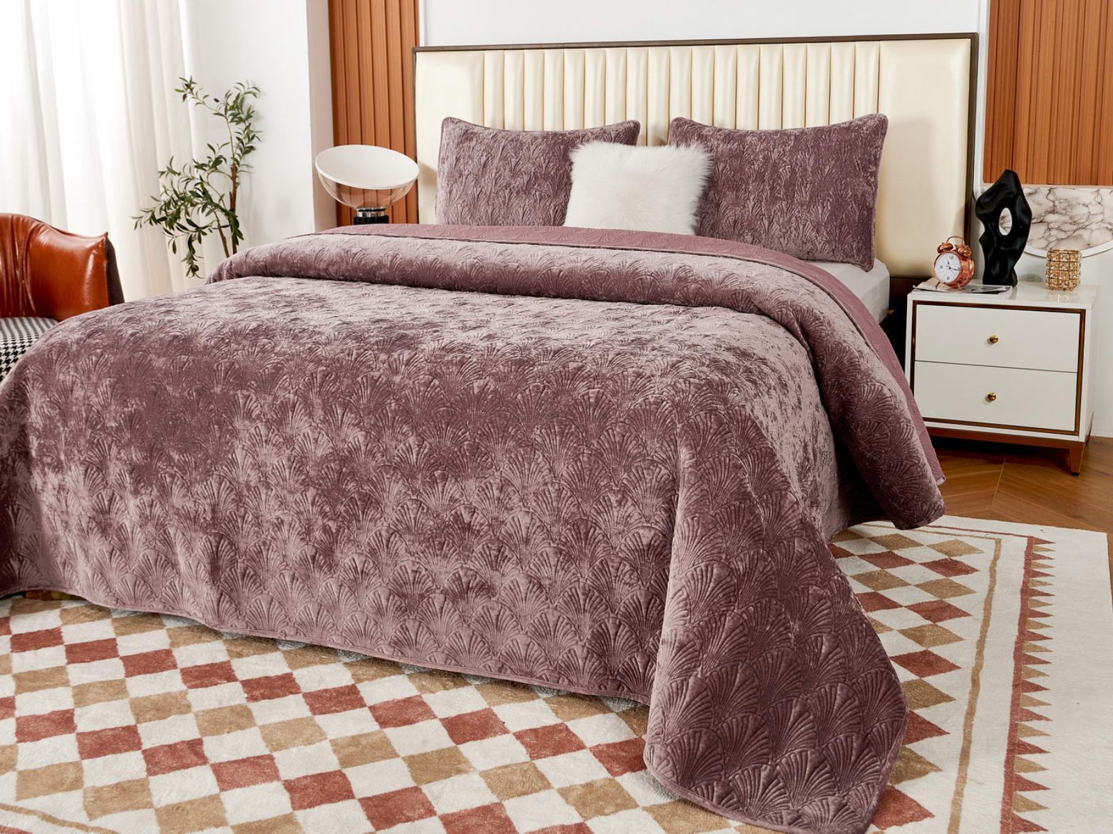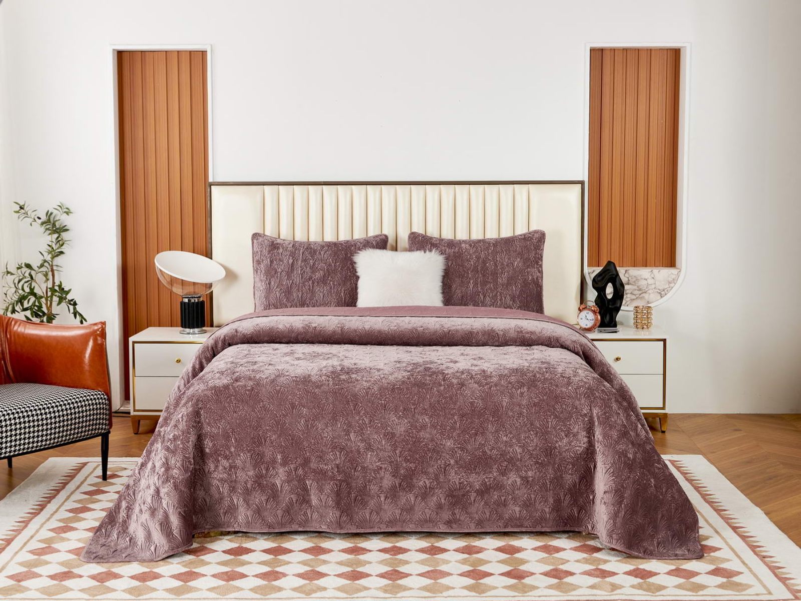 Очаровательное покрывало "Розалин" – идеальный спутник вашего отдыха и уюта. Это воплощение комфорта и стиля создано из высококачественного бархата в различных трендовых цветах и обязательно подчеркнёт уникальность вашего интерьера.