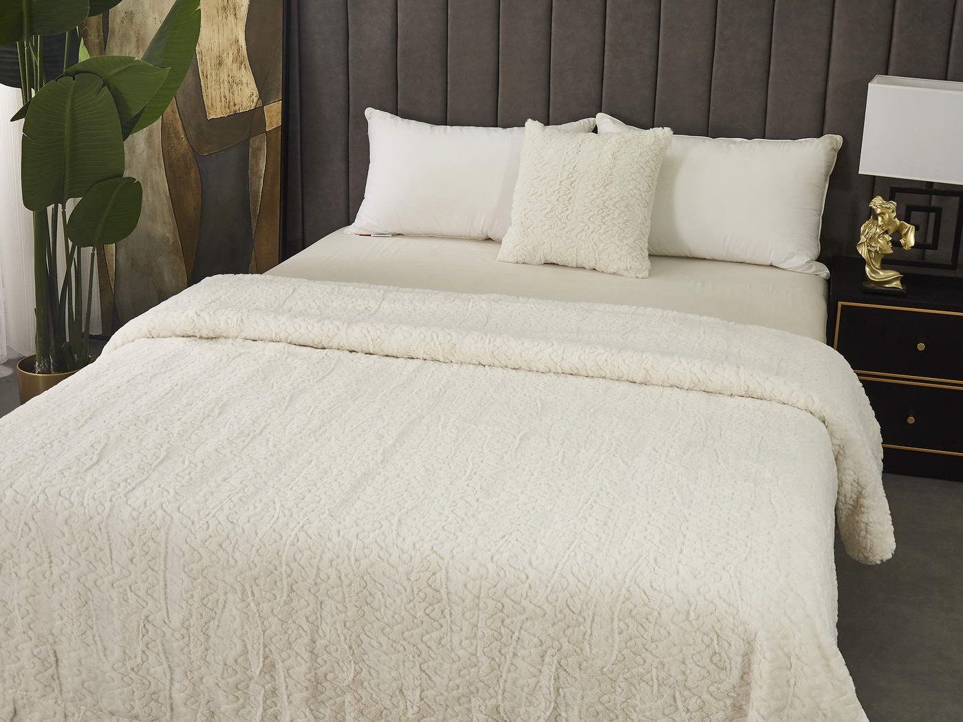Пледы и наволочки Теодор продаются отдельно, а это расширяет простор для творчества. Вы можете подобрать к белому пледу наволочки цвета мокко или розовые, а к черному – белые или бежевые. Не ограничивайте свою фантазию.