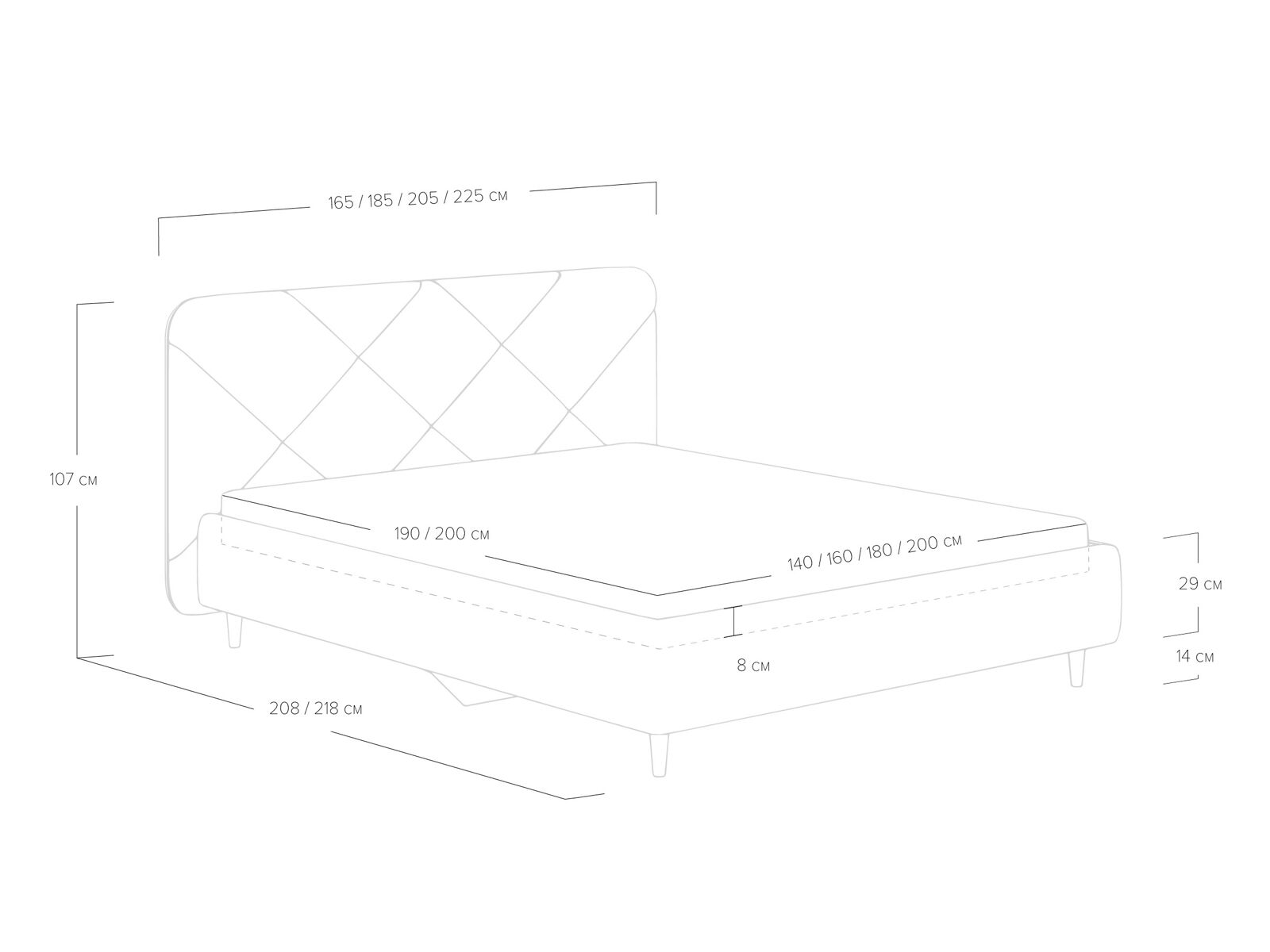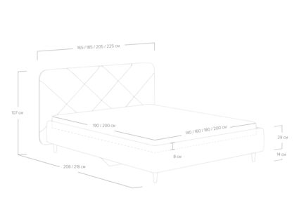 Кровать Taylor выглядит эффектно благодаря изголовью со стежкой в виде крупного абстрактного рисунка. Закругленные углы, объем и мягкость изголовья создадут в вашей спальне атмосферу релакса и уюта. Благодаря высоким опорам из натурального дерева, модель будет смотреться актуально в интерьерах в скандинавском и современном стиле.