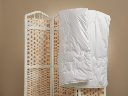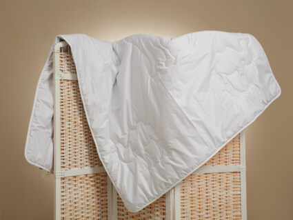 Рекомендации по уходу: стирать каждое изделие отдельно при температуре 40⁰ в режиме «деликатная стирка», с использованием специальных средств для шерсти или деликатных тканей, отжим на высоких оборотах барабана, сушить в расправленном виде, не выкручивать при отжиме. Каждая новая стирка сокращает срок службы изделия. Не использовать отбеливающие средства. Регулярно встряхивать и взбивать изделия после проведенной на них ночи. Хранить не герметично запакованными с притоком свежего воздуха. Воздержаться от использования постельного белья из синтетических и смесовых тканей.